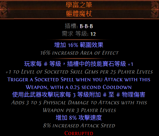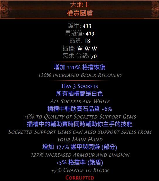 - 沒大地主前:抹滅 OR 稀有火傷法杖 + 破曉(紅王盾)