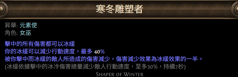 - 寒冬雕塑者:冰緩效果減傷、搭配急凍輔助拿MORE傷