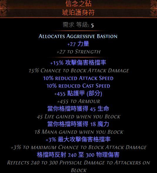 - 每 5% 裝備盾牌上的格擋率,+1% 攻擊傷害格擋率