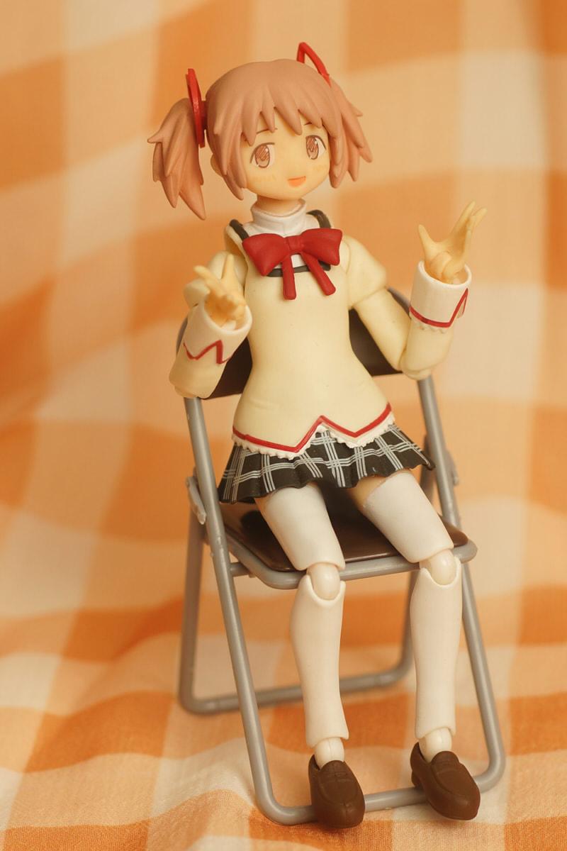 首先先給figma小圓坐看看椅子,這次拍攝也順便測試了新布置的模型攝影棚拍攝,搭配使用了格子花紋的布料當背景。