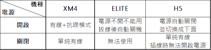 明明有本家XM系列那樣的正常的使用邏輯範本不抄,兩邊卻硬是能一起歪出兩條不同方向的路出來,還到達同一個終點,實屬不易!ELITE這邊是要開機才能插線使用,拔線時會自動關機,搞不懂是有什麼障礙不能自動切去2.4G模式;另一邊的H5也不惶多讓,雖然可以不開機直接插線使用,可是又設計了個開機狀態下插線後自動關機的判定行為,插線時可能是為了防呆所以電源不給開,結果就是變成跟ELITE一樣拔線後都還要開啟電源才能使用2.4G模式。兩者都是青出於藍,更遜於藍的邏輯設計鬼才,可以說是不分軒輊!