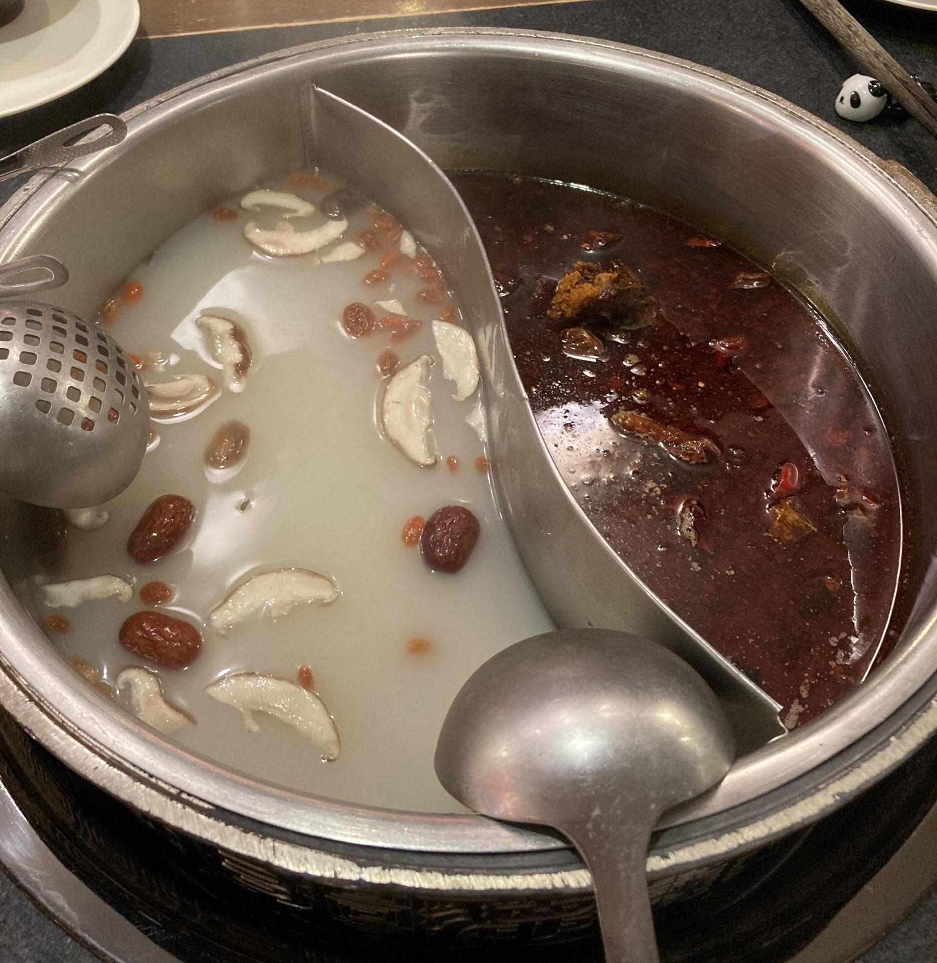 吃的是鴛鴦鍋,右邊好辣,被辣到狂灌飲料