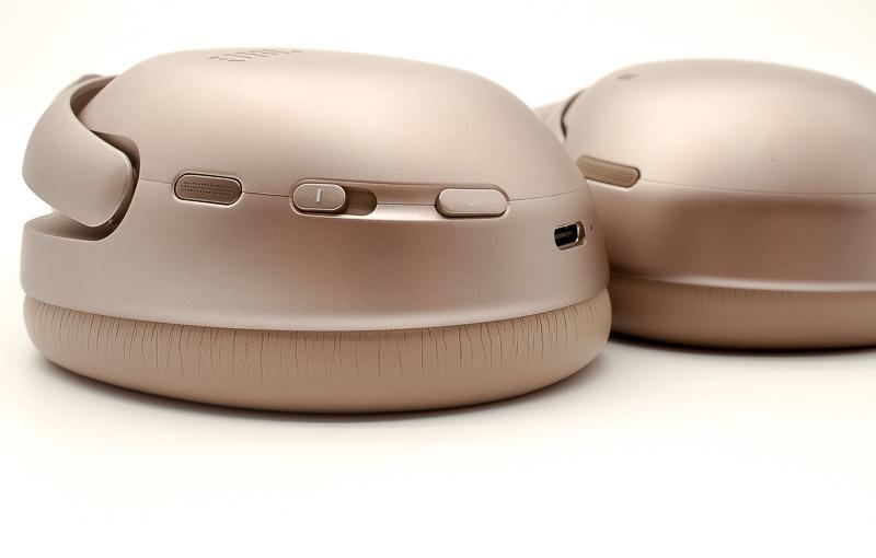 ▼ 操作按鍵集中於耳罩後側,包含音量調整、主動降噪模式切換,播放/暫停則以觸控方式設計於耳罩面板。右側底部設有USB-C充電孔,取消了傳統 3.5mm 有線音源孔,需透過附贈的 USB-C 轉 3.5mm 線材進行連接。麥克風配置方面,耳機左右兩側各裝有4顆麥克風(共8顆),並導入智慧波束成型技術,不僅提升降噪效能,也優化通話收音清晰度。