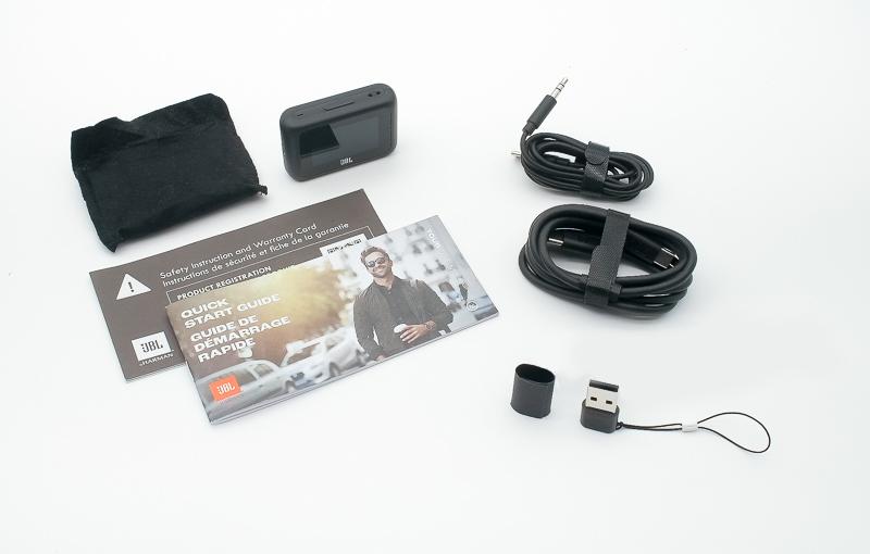 ▼ 下圖展示 JBL Tour One M3 全套配件,包括 Smart Tx 無線發射器、收納袋、USB Type-C轉3.5mm音訊線、USB數據線、快速指南、保固說明,還有一個轉接頭及掛繩。配件齊全,體現JBL對細節的重視及旗艦級完整度。