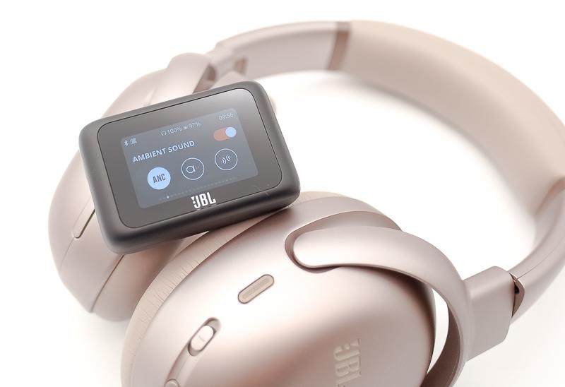 ▼ JBL Tour One M3搭載獨家的Smart Tx無線發射器,配備迷你觸控螢幕介面,能即時監控耳機電量、切換主動降噪與環境音模式,並進行播放、暫停及歌曲選擇。此配件突破傳統藍牙連線限制,可直接連結PC、Mac及手機作為USB DAC和發送器,支援LC3無線音訊編解碼,特別適合多平台辦公場景使用,提升系統整體專業性與便利性。
