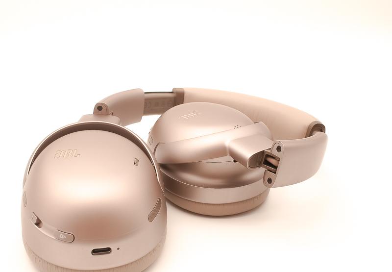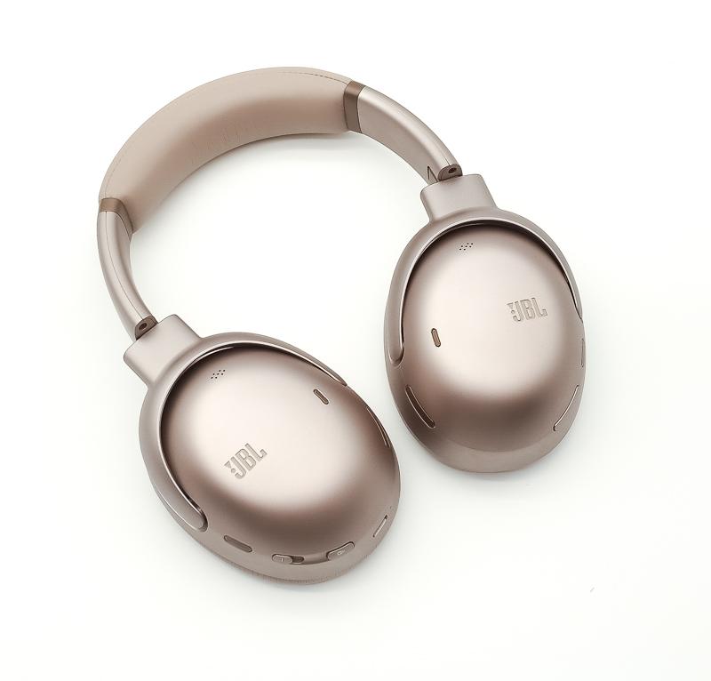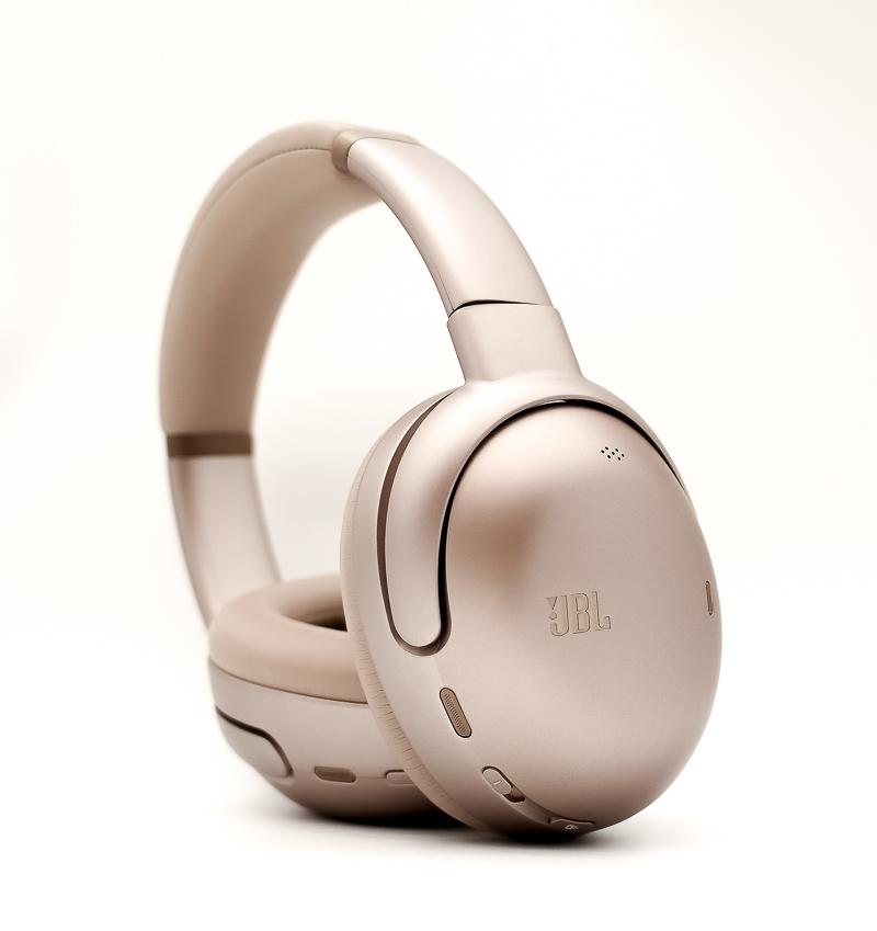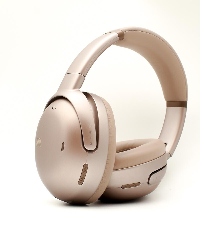▼ JBL Tour One M3外觀延續旗艦系列經典設計風格,香檳金配色搭配流暢線條,耳罩與頭帶採用厚實柔軟材質,整體展現高級質感與舒適佩戴感。細節與整體辨識度在同級耳機中表現突出。