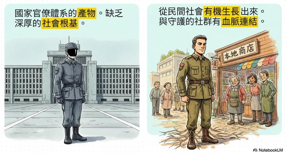 而且改朝換代的大洪水時期,並不是都是一帆風順的和平轉移,到處都是像張獻忠一樣亂殺亂砍的瘋子。一個官派縣長可以直接離開轄區,土地本來就不是他的,為別人拼命幹嘛? 村民們長期缺乏治理經驗,當聽聞隔壁村被殺光光時,連能不能抵抗,該不該投降都決定不了,也因為人與人之間缺乏組織動員經驗,彼此沒有信任,很可能叫幾個年輕人拿武器,他們反而把村裡的東西搶光後跑不見人影。