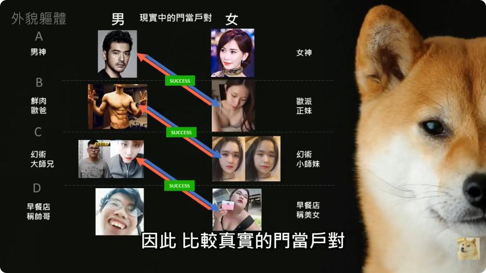 也許各位會說,那這位女性要求這麼多貪婪,那怎麼不一開始就去找這麼優秀的對象? 因為現實不是童話故事,自由市場下你就只能找到比你強1.5倍的男性,要跳上去找比你強10倍20倍的,只能用騙的,或是極低機率的中彩票才有可能。