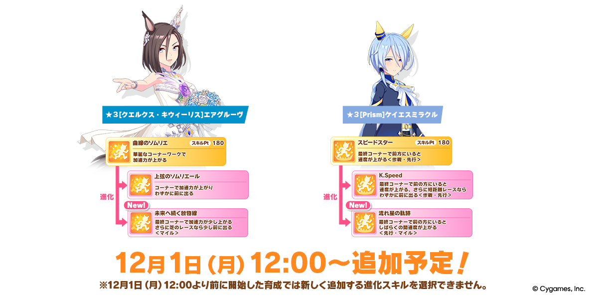 12/01 預定追加 2 名馬娘的可選進化技能。