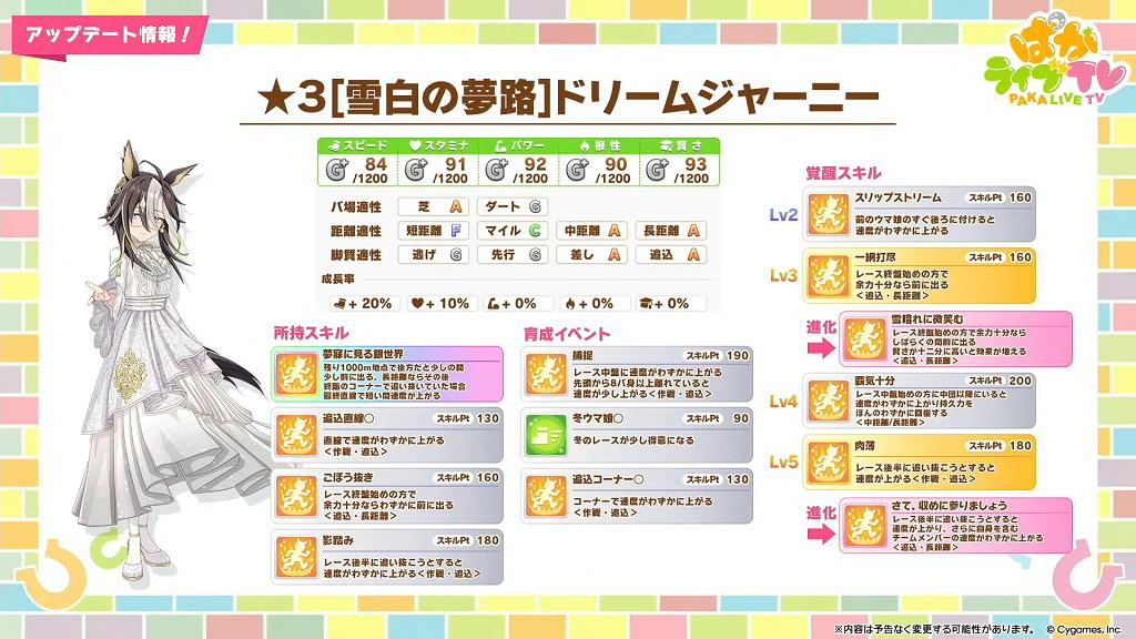 ★★★ 夢之旅 [雪白の夢路]ドリームジャーニー 育成情報