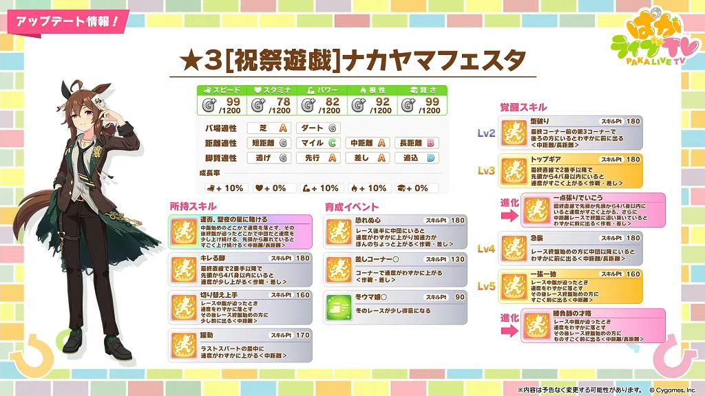 ★★★ 中山慶典 [祝祭遊戯]ナカヤマフェスタ 育成情報