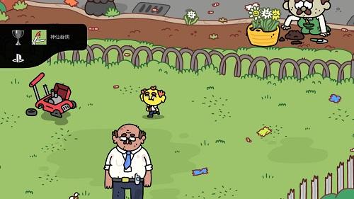 照影片,拿除草機,左右移動除草,完成後會跳盃。