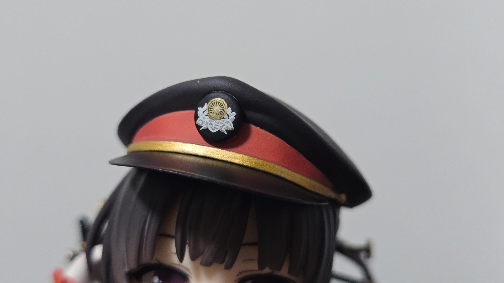 帽子是磁吸式的,靠上去就能固定,帽徽的細節也相當足