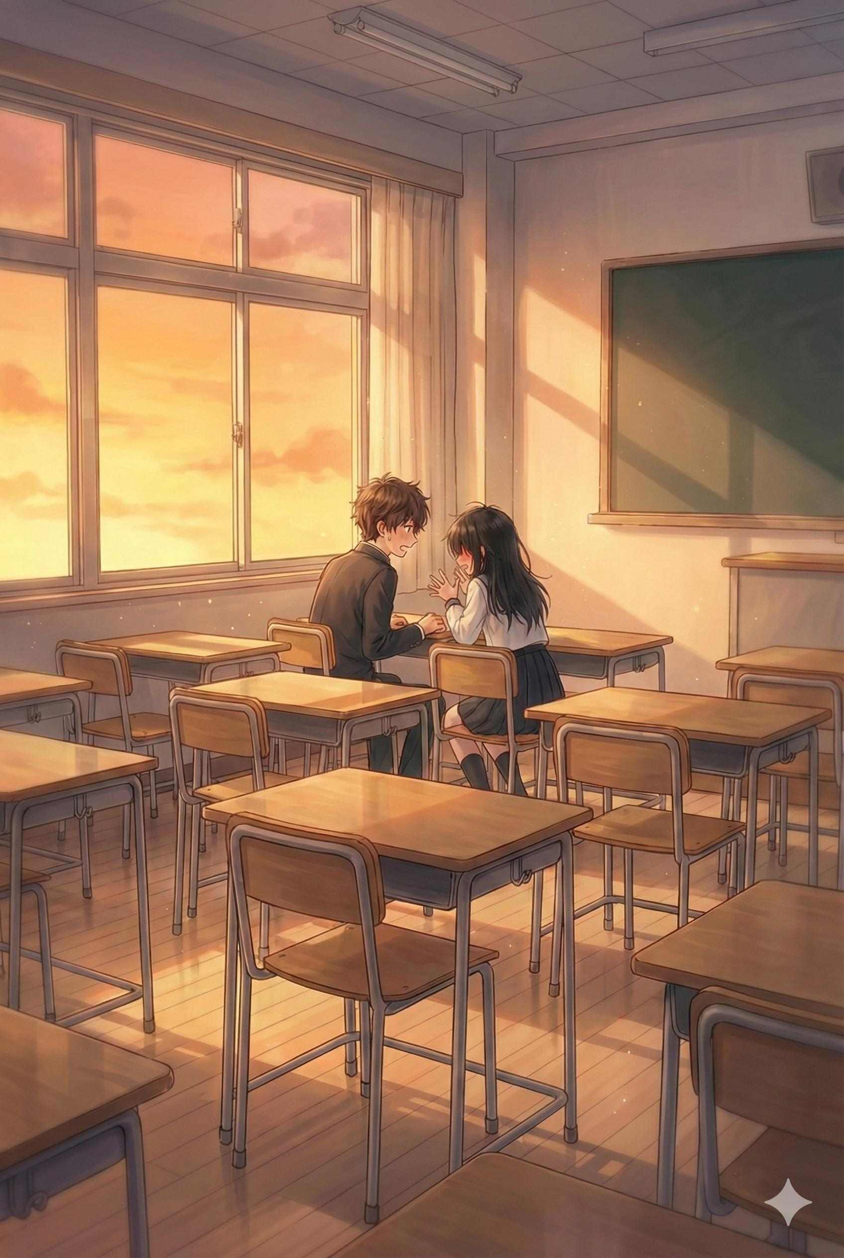 開學後不久,就在我們一如既往的待在教室裡當個稱職的角落生物時,有人突然打開了門:「這裡應該沒人吧?」進來的是一對男女,鬼鬼祟祟的環視著教室,確認教室裡沒有人會打擾他們的好事。