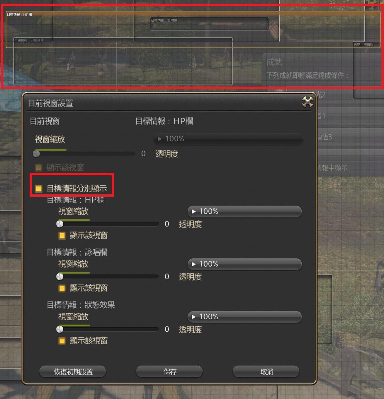 2.選擇「目標情報分別顯示」,就可以把詠唱欄獨立拉出來了。