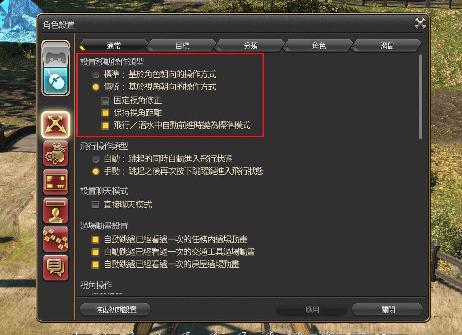 在角色設置→操作設置→通常,點選設置移動操作類型即可。