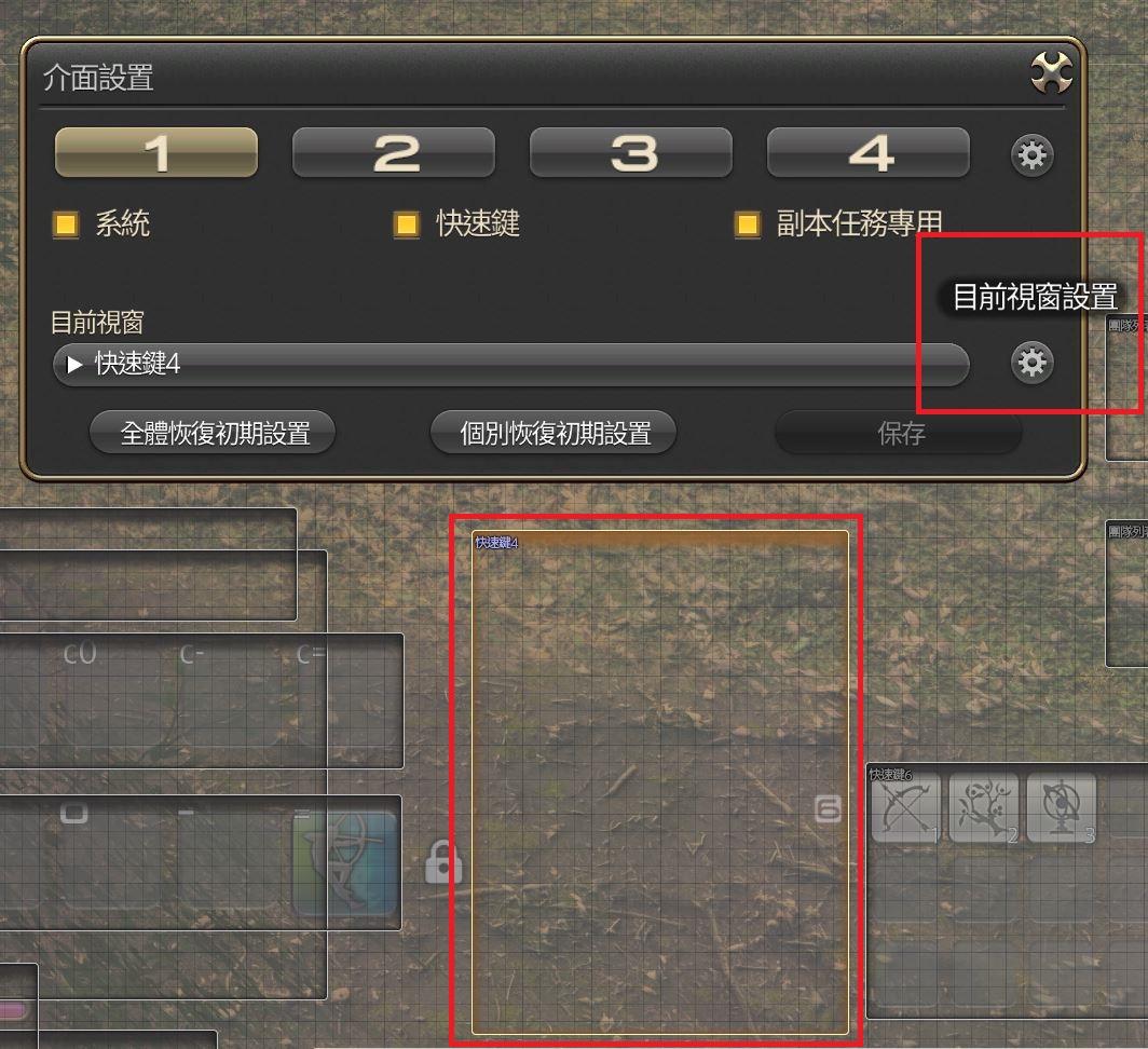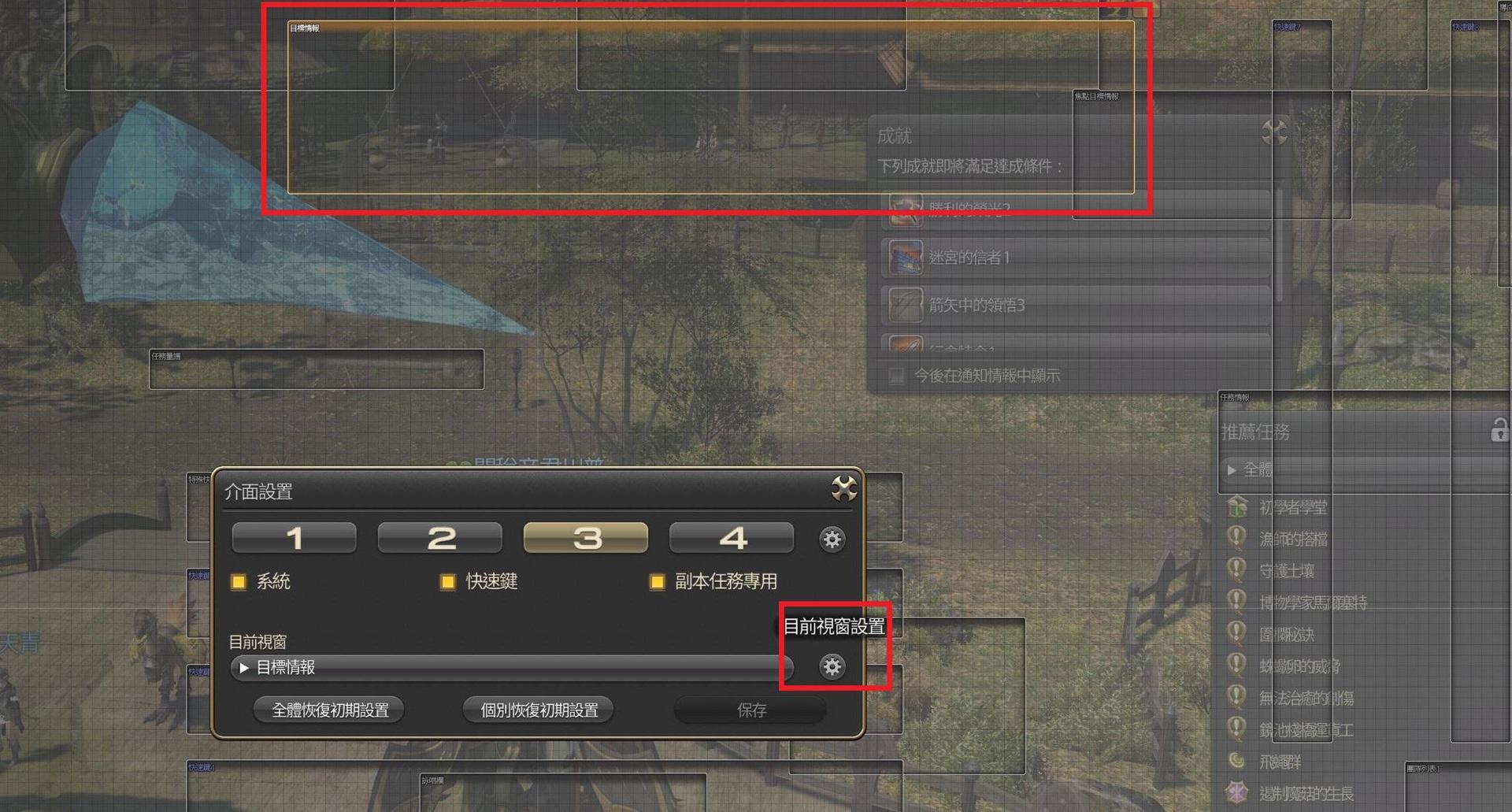 1.在介面設定中選擇「目標情報」視窗,然後點選齒輪按鈕開啟目前視窗設置。
