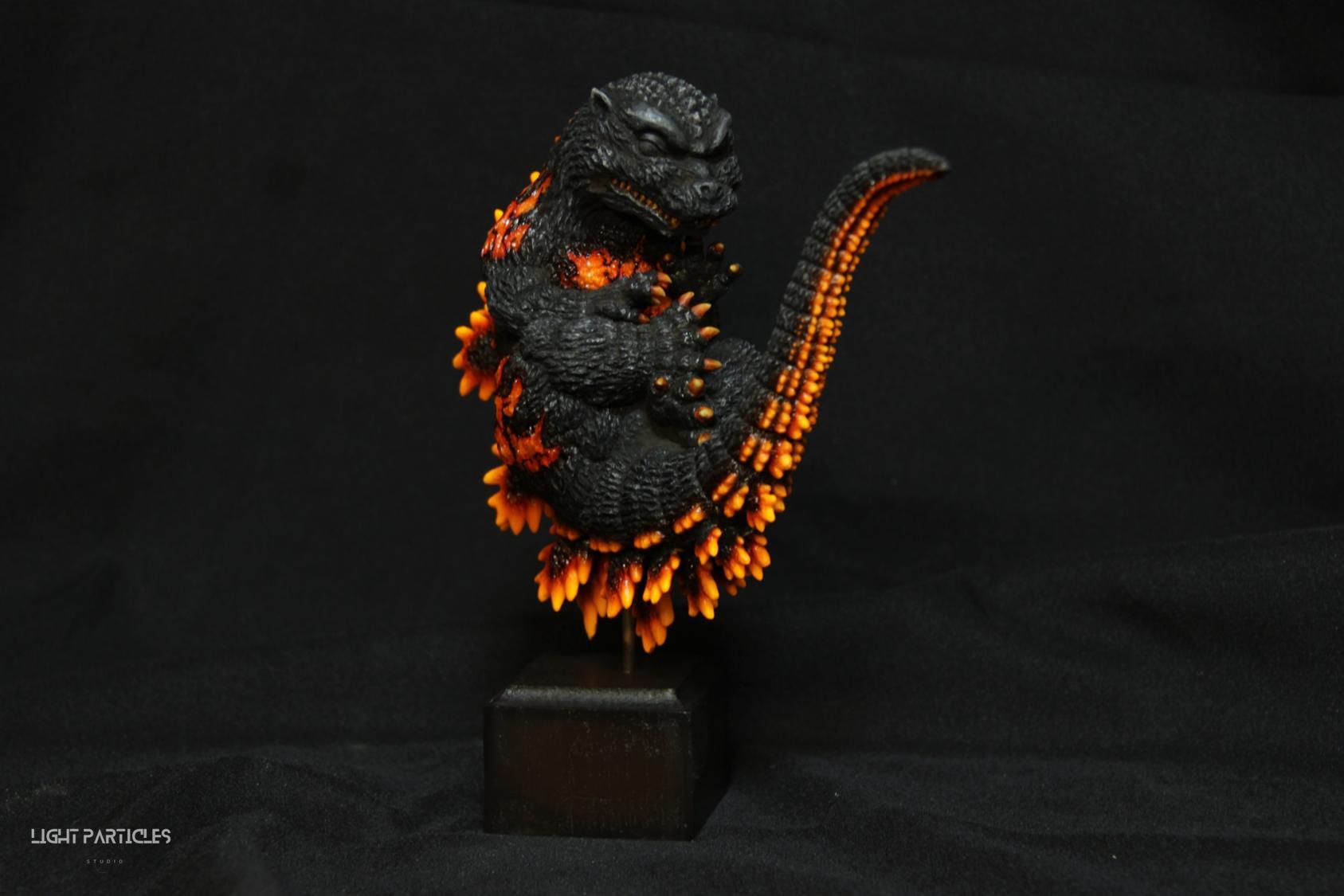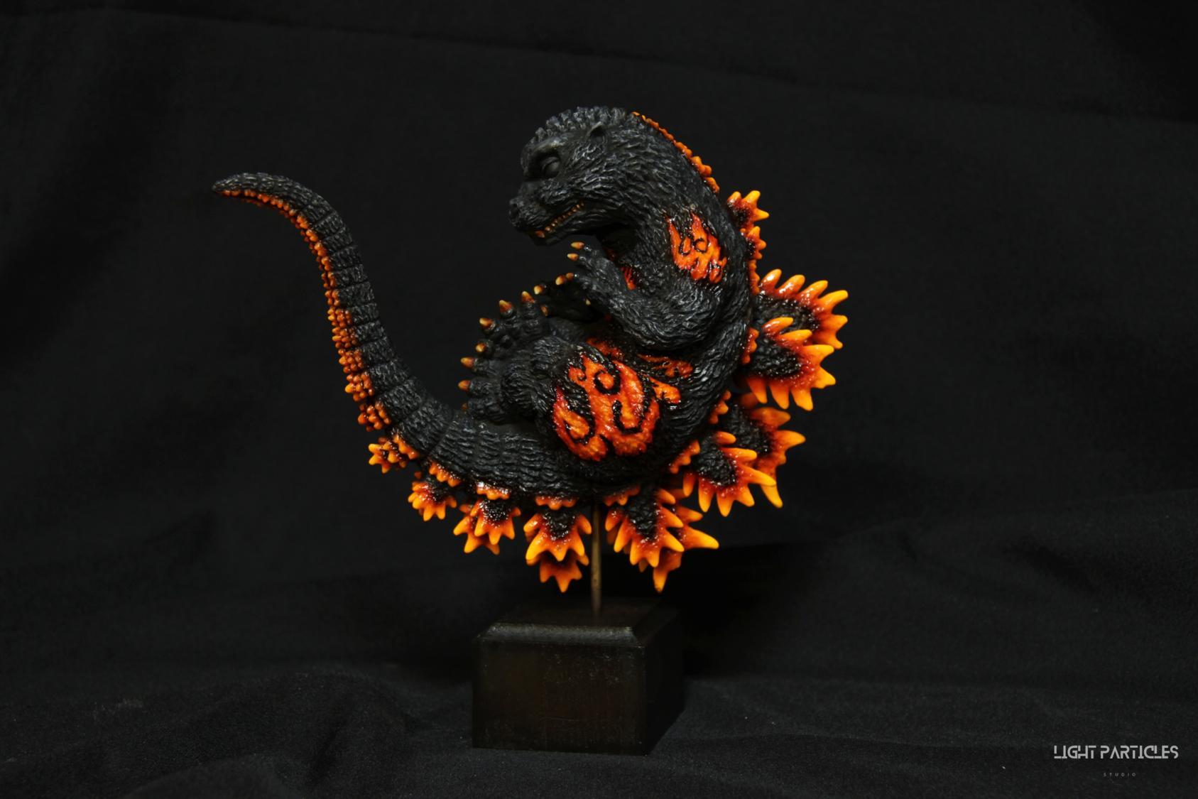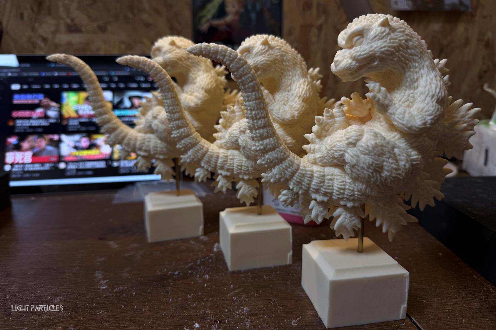 自這組套件公開後,一直想要入手複數再塗裝成各種樣式,今年RF終於順利購入並在近期達成這小目標。相較於之前系列作品,這組眠獸的尺寸大了不少,背鰭也採用了分件設計。製作方面得益於良好的分件設計即使一次製作3組,過程也非常流暢。本次製作一共塗裝了紅蓮,藍鰭,以及原色等3種經典顏色。紅蓮哥吉拉繪製浮世繪火焰紋路做出與以往不同的風格,本體也相對其他2款調整為較深膚色;藍鰭選擇良好發光感且合理漸層的顏色搭配,並製作藍背鰭與原色背鰭間自然銜接過渡;原色版則在背鰭塗裝保留套件象牙白的半透明質感。拍照紀錄也將之前設計的發光底座做搭配並更新電影logo款式。希望大家喜歡這次新製作~