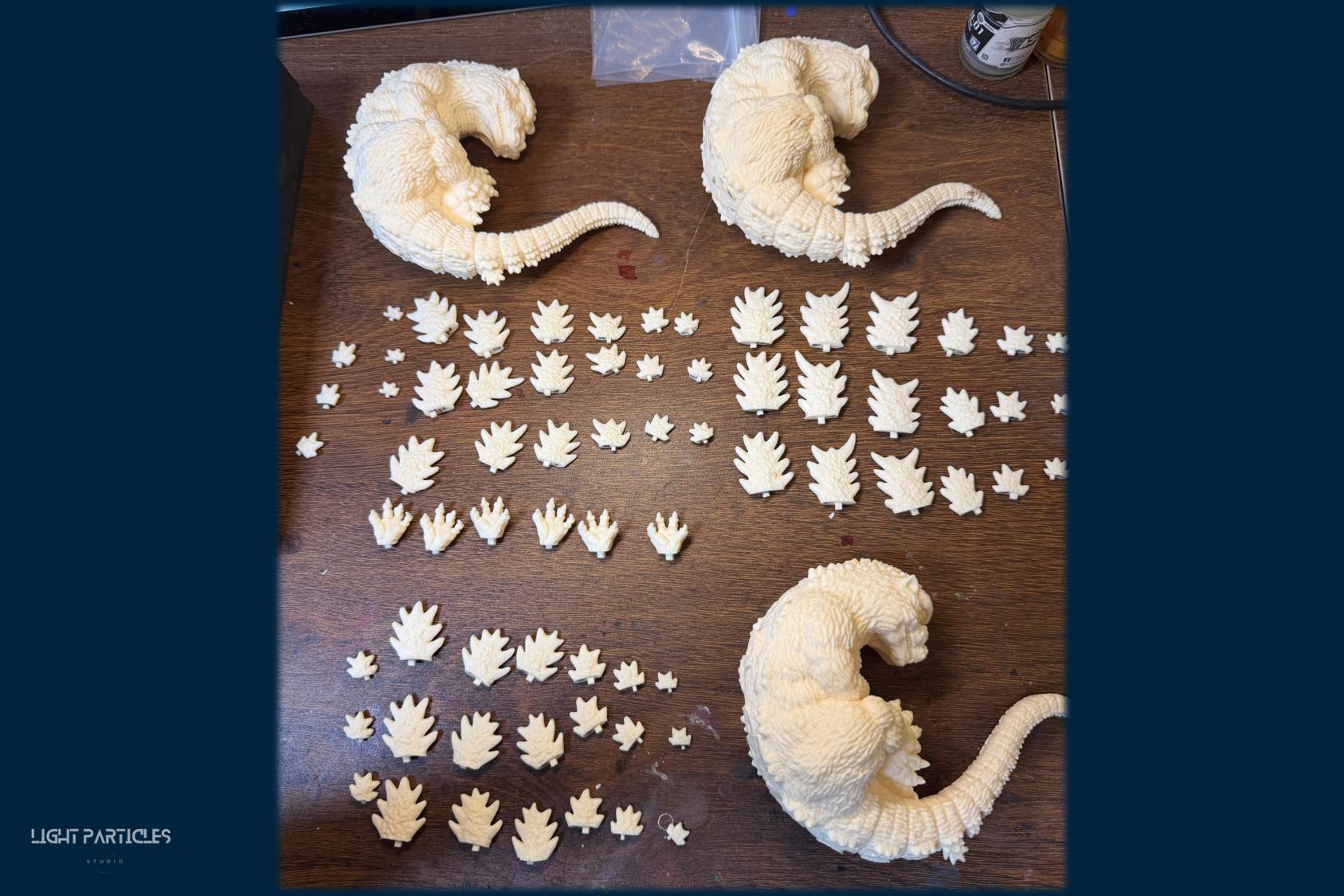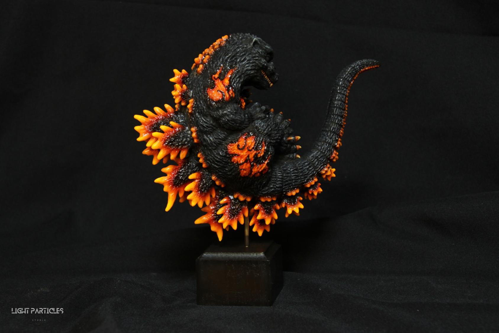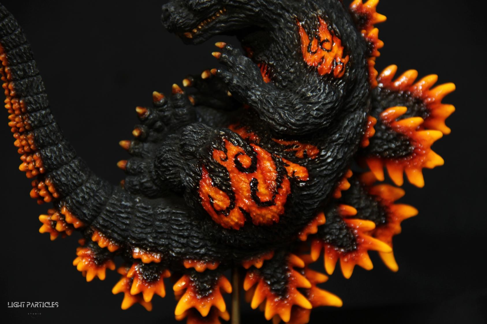 自這組套件公開後,一直想要入手複數再塗裝成各種樣式,今年RF終於順利購入並在近期達成這小目標。相較於之前系列作品,這組眠獸的尺寸大了不少,背鰭也採用了分件設計。製作方面得益於良好的分件設計即使一次製作3組,過程也非常流暢。本次製作一共塗裝了紅蓮,藍鰭,以及原色等3種經典顏色。紅蓮哥吉拉繪製浮世繪火焰紋路做出與以往不同的風格,本體也相對其他2款調整為較深膚色;藍鰭選擇良好發光感且合理漸層的顏色搭配,並製作藍背鰭與原色背鰭間自然銜接過渡;原色版則在背鰭塗裝保留套件象牙白的半透明質感。拍照紀錄也將之前設計的發光底座做搭配並更新電影logo款式。希望大家喜歡這次新製作~