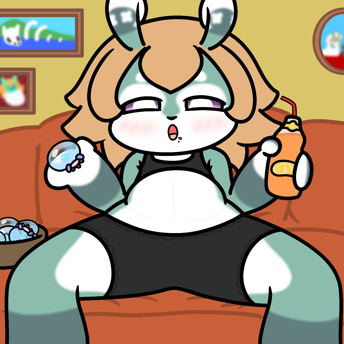 她吃了太多矽藻和楓達,所以肚子脹起來了
