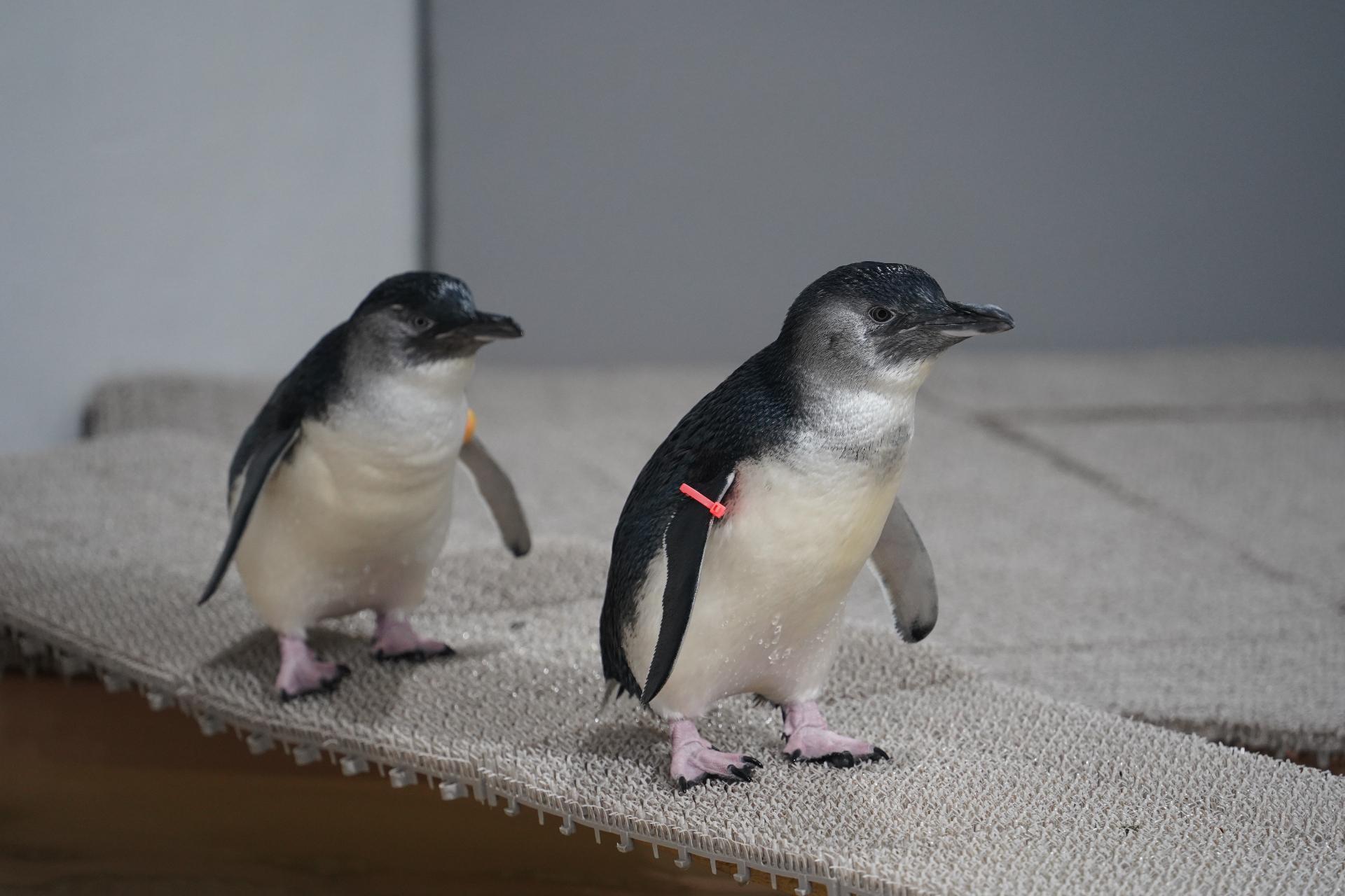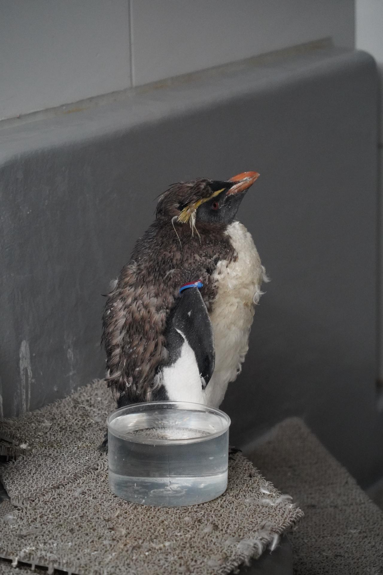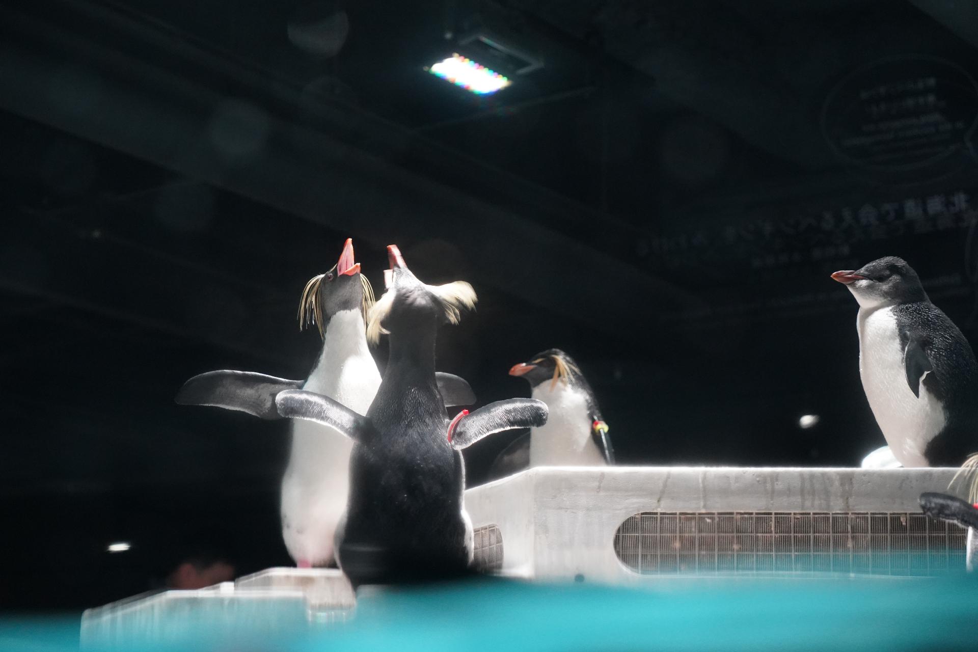 飼育員最後會直接把飼料丟到水裡,接著企鵝會一整群跳下來搶著吃