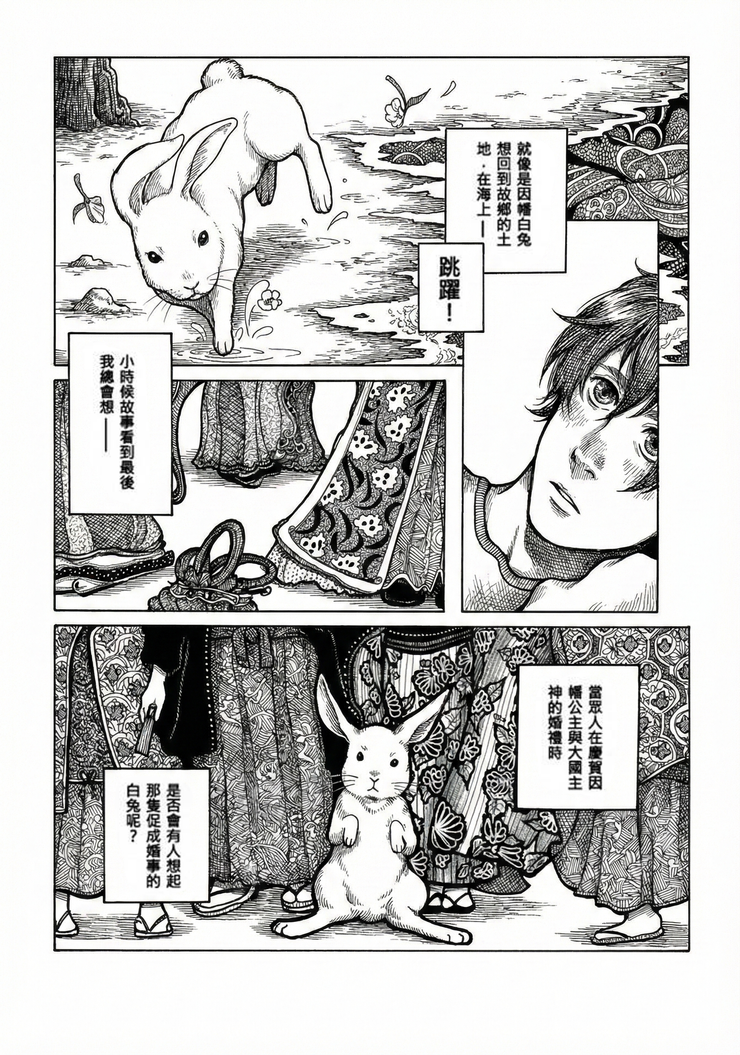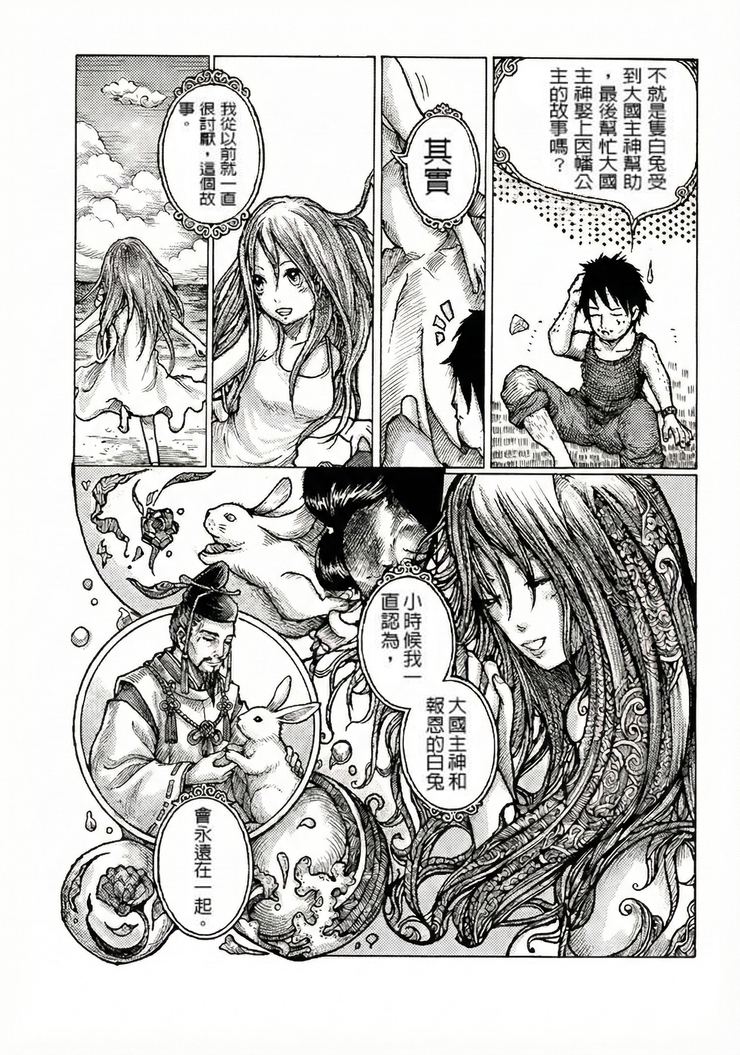 在東京失業的男子,最近常常夢見小時候,在老家傳說的白兔與大國主神的故事。讓他想回去老家一趟。老大不小的年紀還回家找神話中的兔子,男子覺得自己有點荒謬,但卻在海岸邊上偶遇了一位女孩,年輕女孩問起男子:知不知道神話『因幡白兔』的故事......