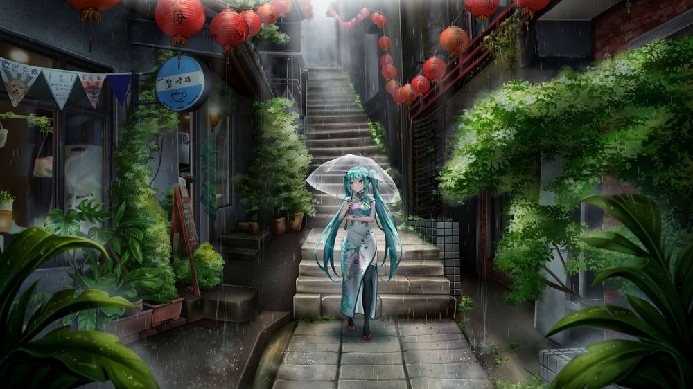 初音來到九份豎崎路,租了旗袍,開心出遊,結果下雨的風景