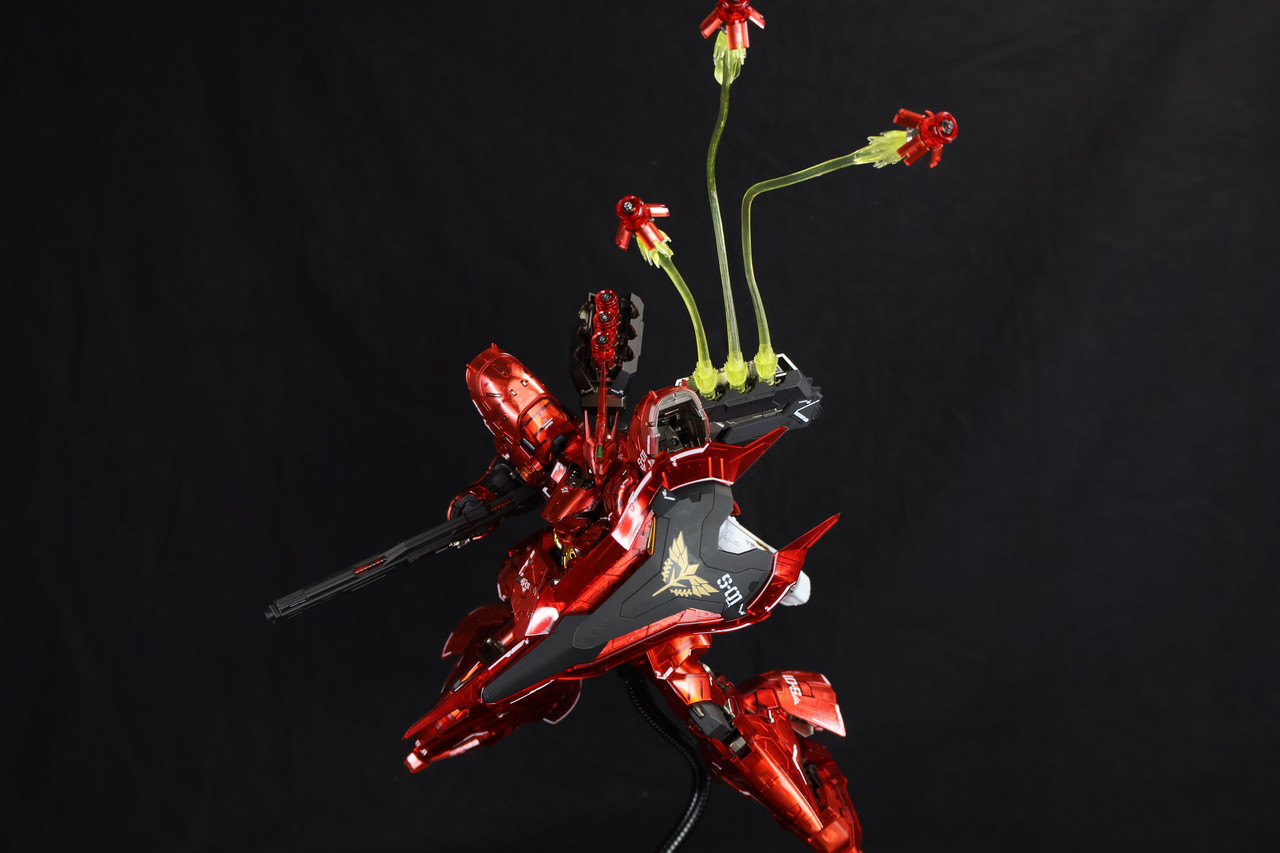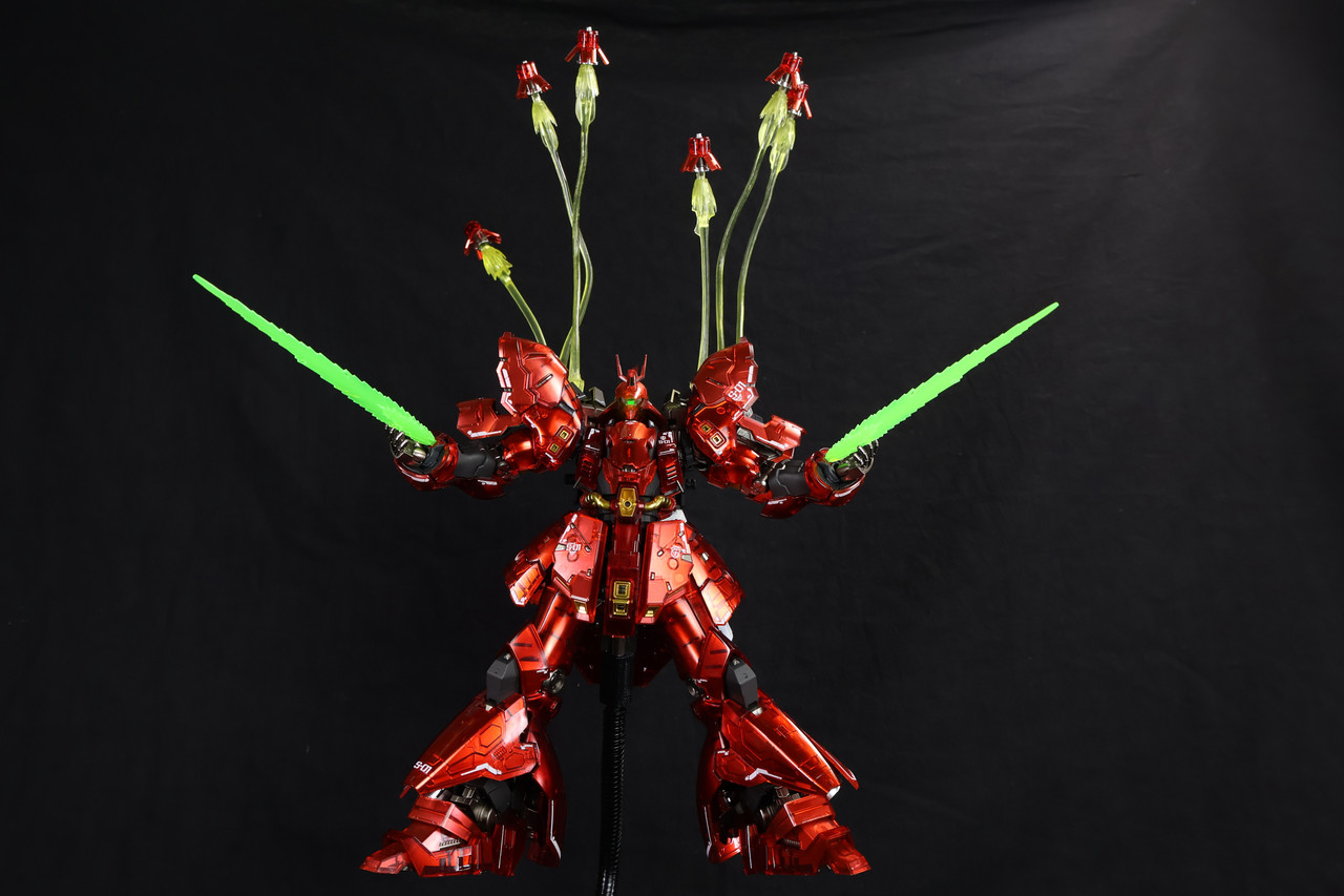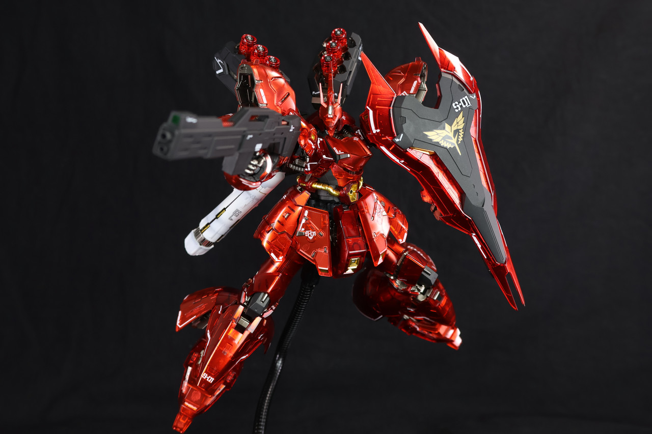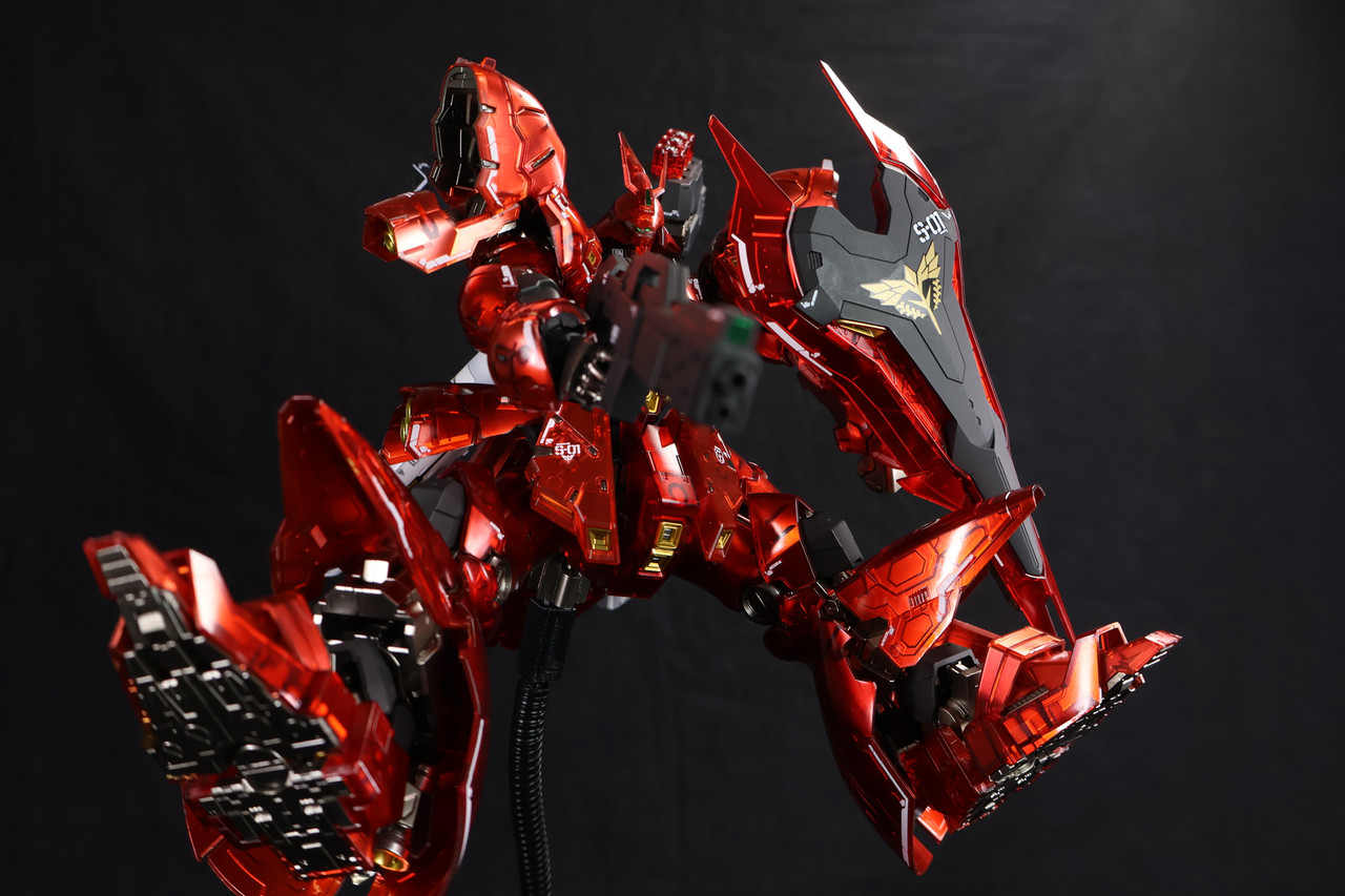 RG系列一直致力於在 1/144 的比例下追求「真實感」。而新吉翁總帥夏亞·阿茲納布爾的最終座駕沙薩比的推出,無疑是該系列的一個里程碑。今天要分享的是跟模友收的仿機械核心電鍍塗裝,並追加了副廠改件的版本。