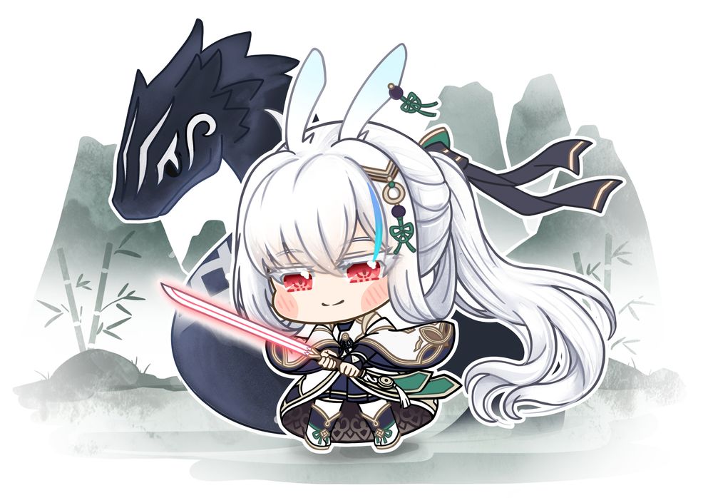 畫了隻紅瞳白毛超級帥的兔兔劍士蓮!!