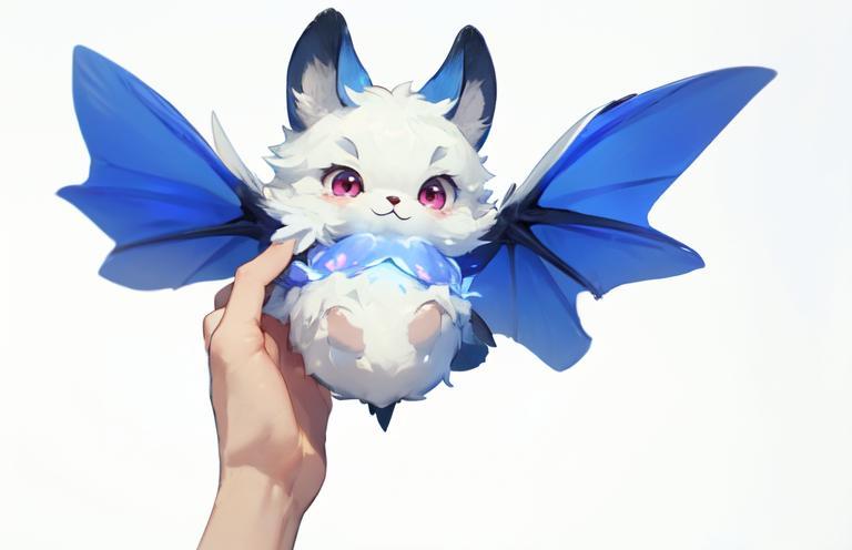 秘銀中誕生的白色生物身體狀似蝙蝠,張開藍色的小翅膀,用圓溜溜的粉色小眼與夜談對視,奶聲奶氣地叫著。