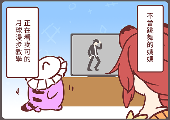 最近她開始練習月球漫步w 莫名的有趣,就跟著她一起學,不過都是隨興跳一下,純屬娛樂。