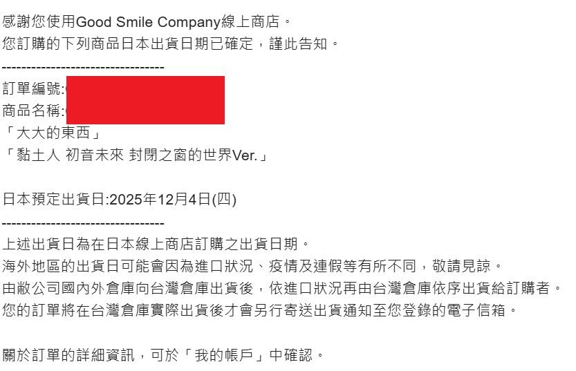 終於收到消息這個黏土人將在12/4日本發貨
