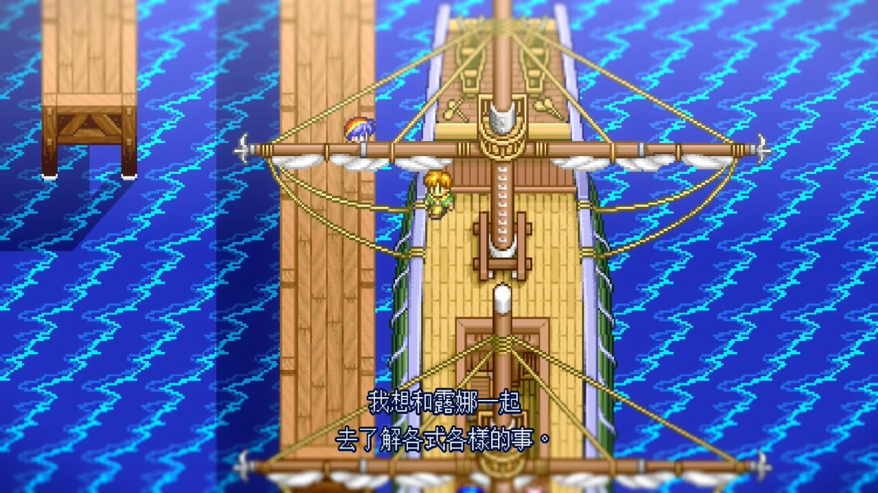 像是阿雷斯從一開始不顧一切的想要離開家鄉展開冒險,甚至打算背著露娜離開,卻反而在旅途中意識到她的重要。當露娜擔心拖累阿雷斯而準備離去時,阿雷斯更只是單純的認為不能少了露娜而要她一起,相當直白的發展,但氣氛的渲染卻也讓我覺得深刻。最終也很好的前後呼應,阿雷斯放棄了自幼夢想的的馭龍大師,選擇與露娜回鄉過活。