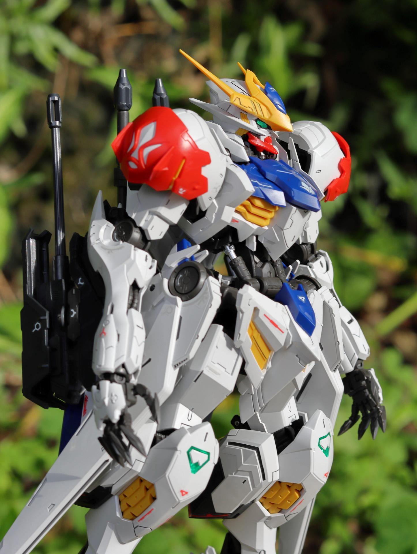 繼2019年末,MG獵魔鋼彈發售後便再無下文,苦等多時直至鐵血10周年,2025再度以壓軸之姿,將第二季登場的天狼型獵魔鋼彈(Gundam Barbatos Lupus)端上檯面,暫時滿足廣大模友們的殷殷期盼(狼王總算有希望了...嗎?),盒繪與大型MA哈斯蒙激鬥、沙塵飛揚的壯闊場景,著實又讓人熱血一番,但懾人的紅眼特效件,和大把的轉生式荷姆薇潔巨劍等配件,仍是毫不意外地放在PB限定。