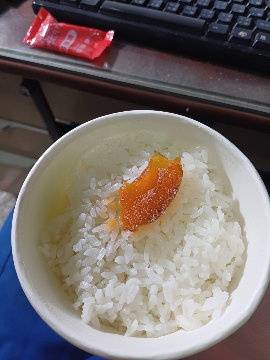 白飯這次我多單點一碗做加量,加量的白飯配塊醬瓜,在原先便當就有白飯吃完,則在將這碗加量的白飯放入便當盒配其他菜一塊吃。飽足感來講,原本的便當白飯加上多單點的白飯,配其他菜來吃,能達八至九分飽且到滿足的感覺。