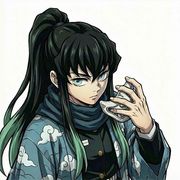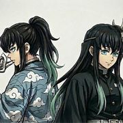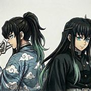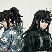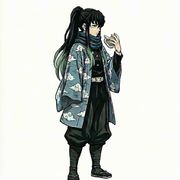 他一個箭步衝出房間,庭院內站著一個黑髮青年,他身上穿著破破爛爛黑色的衣物,仔細看還是能看出來那是鬼殺隊的隊服,腰間配著一把日輪刀,脖頸掛著藍色勾玉。