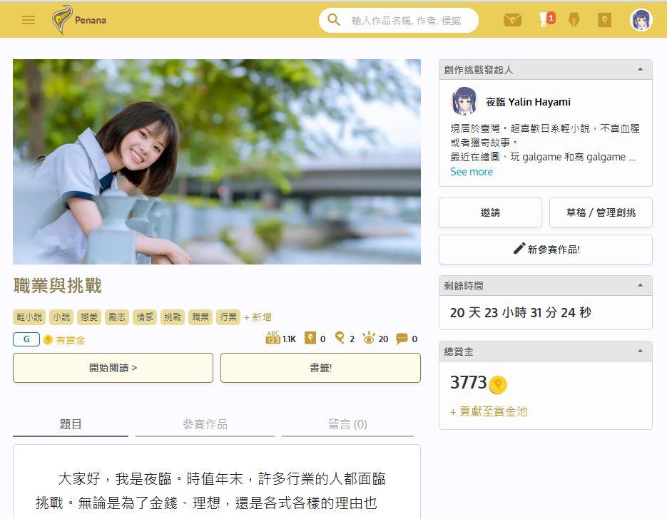 五、創挑時間是為期三個星期。如果我讀完參賽的文章,有感想就會留言,沒有的話就沒有。歡迎大家也能彼此多多交流。
