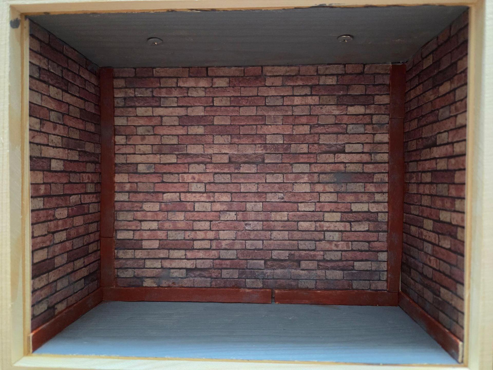 展示間目前長這樣,因為整個就是懶所以磚牆就用有圖案的紙張代替,不然以前我會用珍珠板雕磚牆再慢慢上色