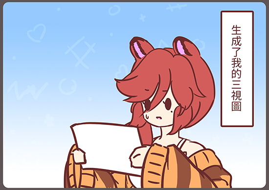 對三視圖的完整性感到驚訝,但我也沒有因此愧對以前委託三視圖的朋友們,因為我確實把該要的資訊都附上了,只是以後看來每個委託人都要附個眼睛的特寫,看起來挺重要的。