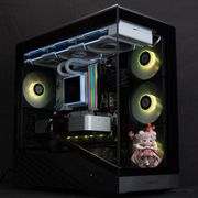 較為可惜的是機殼本身附贈的四個風扇是 3-Pin DC 供電,有的人可能會在意風扇供電這部分就看個人了,若想進一步加強機殼散熱效果,可以額外增購風扇在側面或是頂部,本篇搭配六熱管雙塔來壓制 285K 確實有些吃力,建議大家參考顯示卡溫度即可。