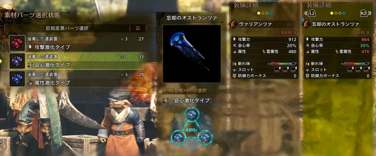 (仔細看右上角的武器性能,R8機械武器說是「強化」成巨戟武器,但某些數值卻下滑了)