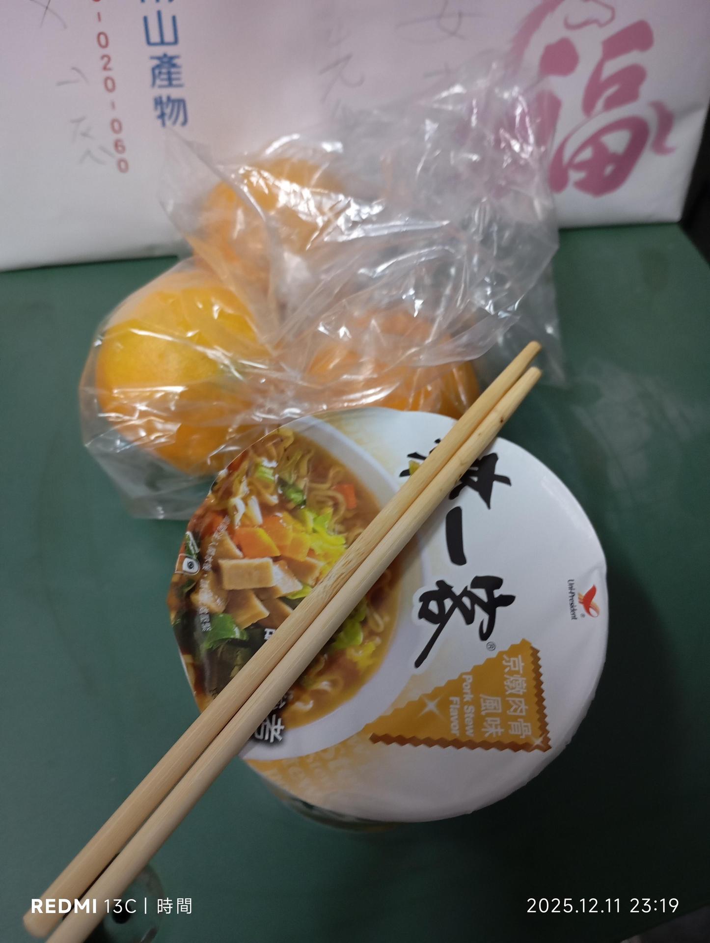 之後看他把車停在我旁邊問我要不要吃橘子!