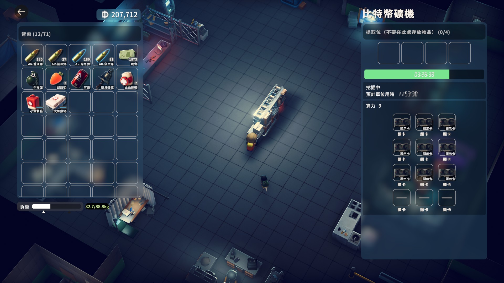 所謂的"礦場"可以把撿到的顯卡放進來 賺被動收入(還真是寫實