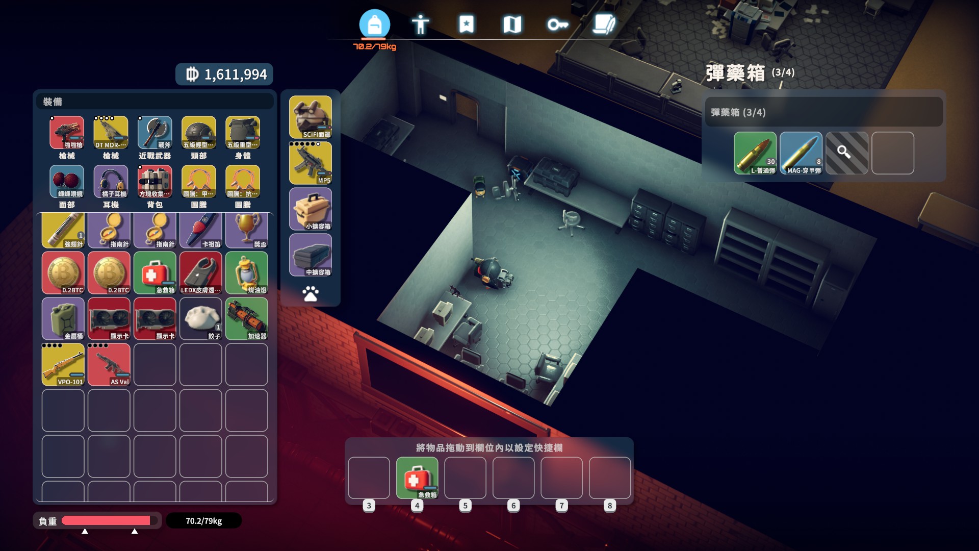 在下覺得子彈是僅次於金錢 搜刮起來最爽的 實用&價值兼具,整個倉庫大概有1/4 都是彈藥 XD