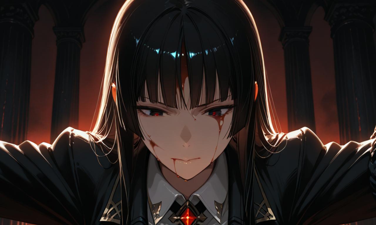 鮮血自額角下滑,沿著五官輪廓滴落,滲入唇邊。深沉的劇痛從四肢傳來,血肉被劃開、拉扯,但她仍咬緊牙關,不願向痛苦屈服。