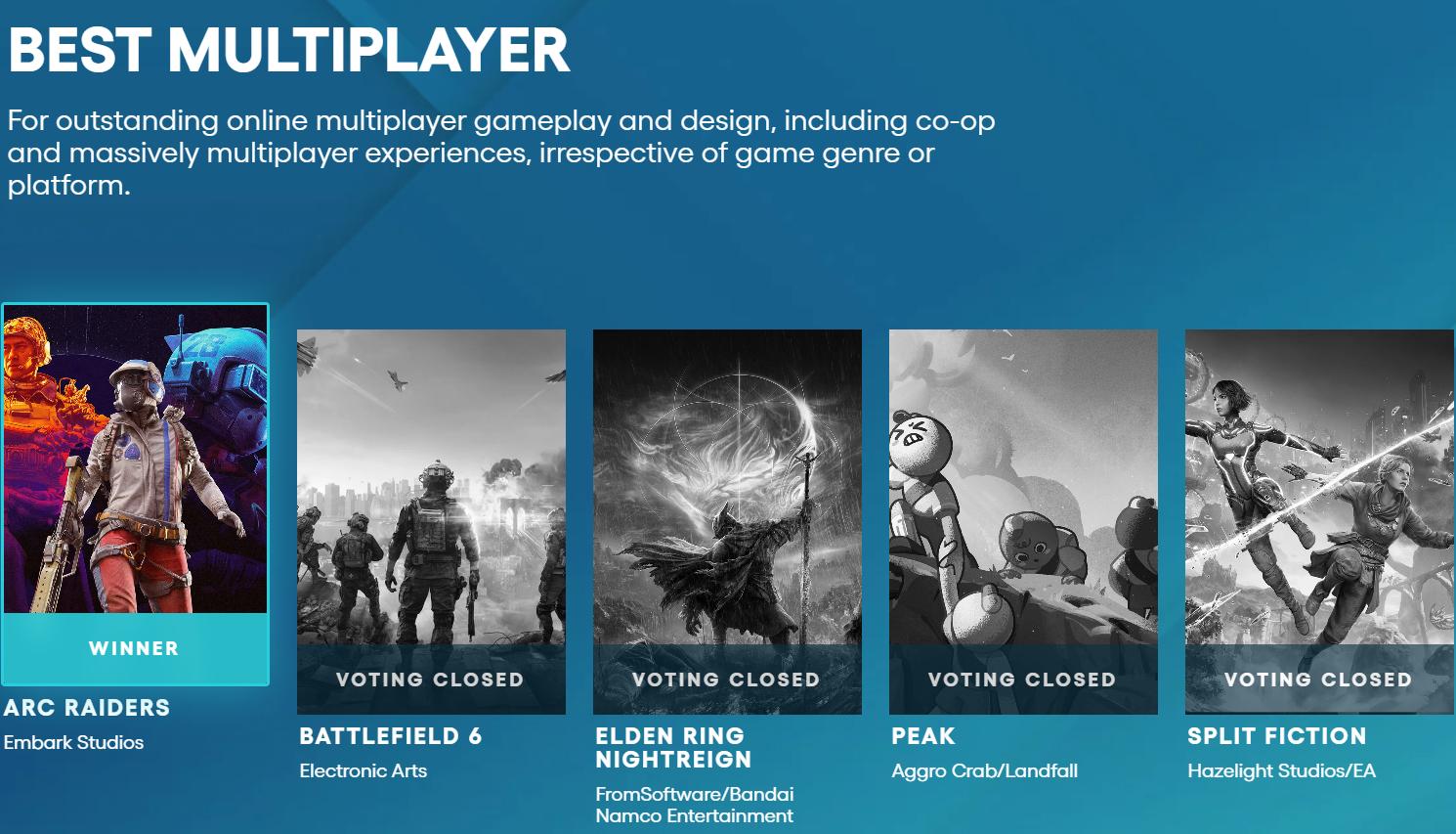 前戰地團隊新作ARC Raiders榮獲 (TGA)2025年最佳多人連線遊戲大獎