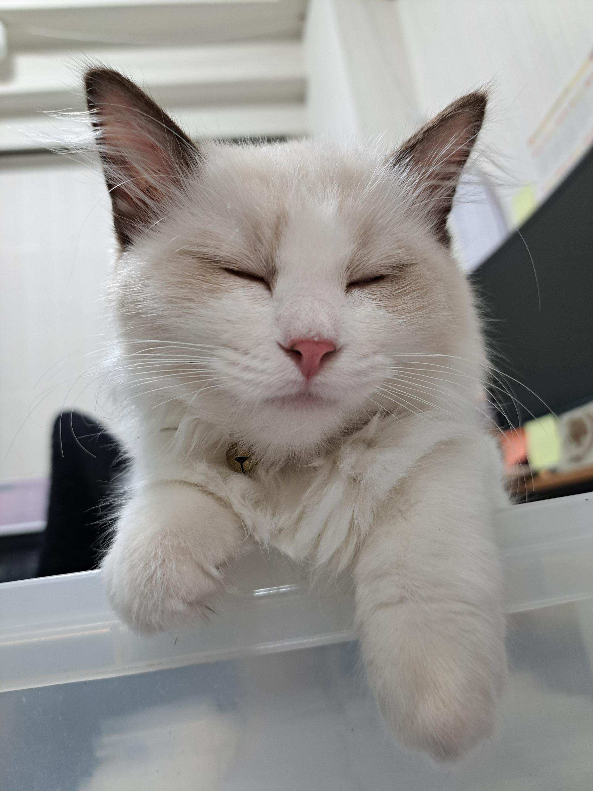 因為老是把妹妹抱開,她常常發現我要撈她就逃跑,但我擼她,她會呼嚕。