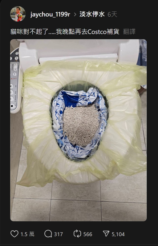淡水人停水到得用貓沙了