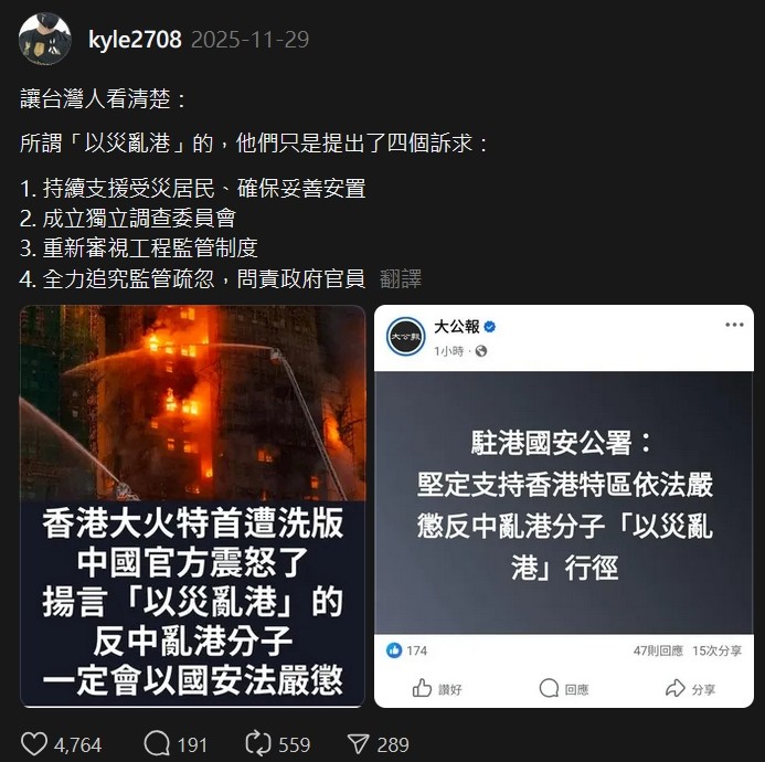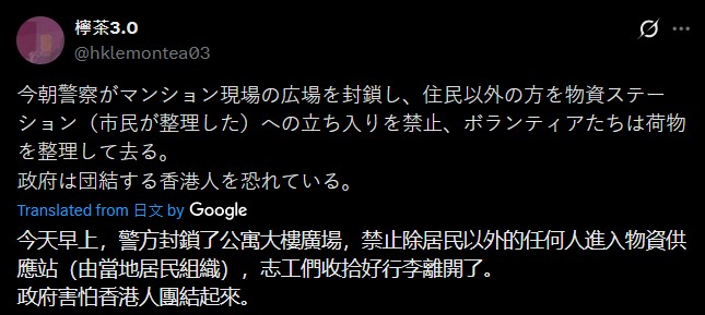 ref :士多貓TV 香港沖天大火災背後真相 ? 我們想對台灣人說的話,請以香港為鑒