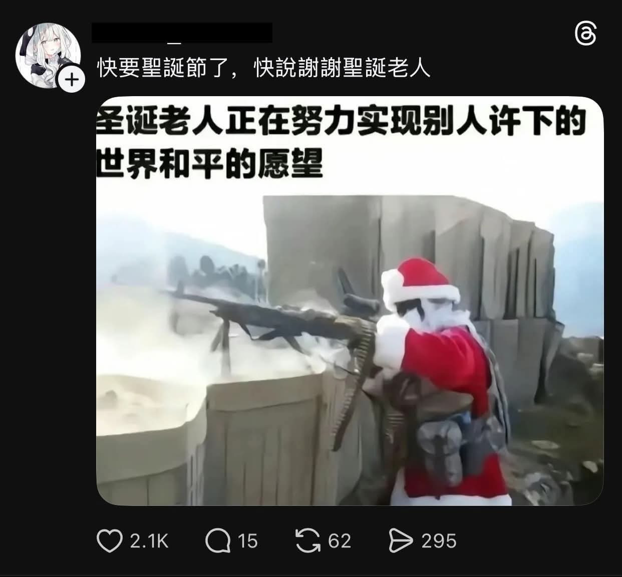 當聖誕老人聽到有人的願望是世界和平~